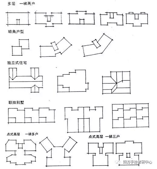 点群式:低层独立式、多层点式、高层塔式住组成独立的群体的布置形式,一般可围绕某一公共建筑、活动场地、绿地布置,以利于自然通风和获得更多的日照